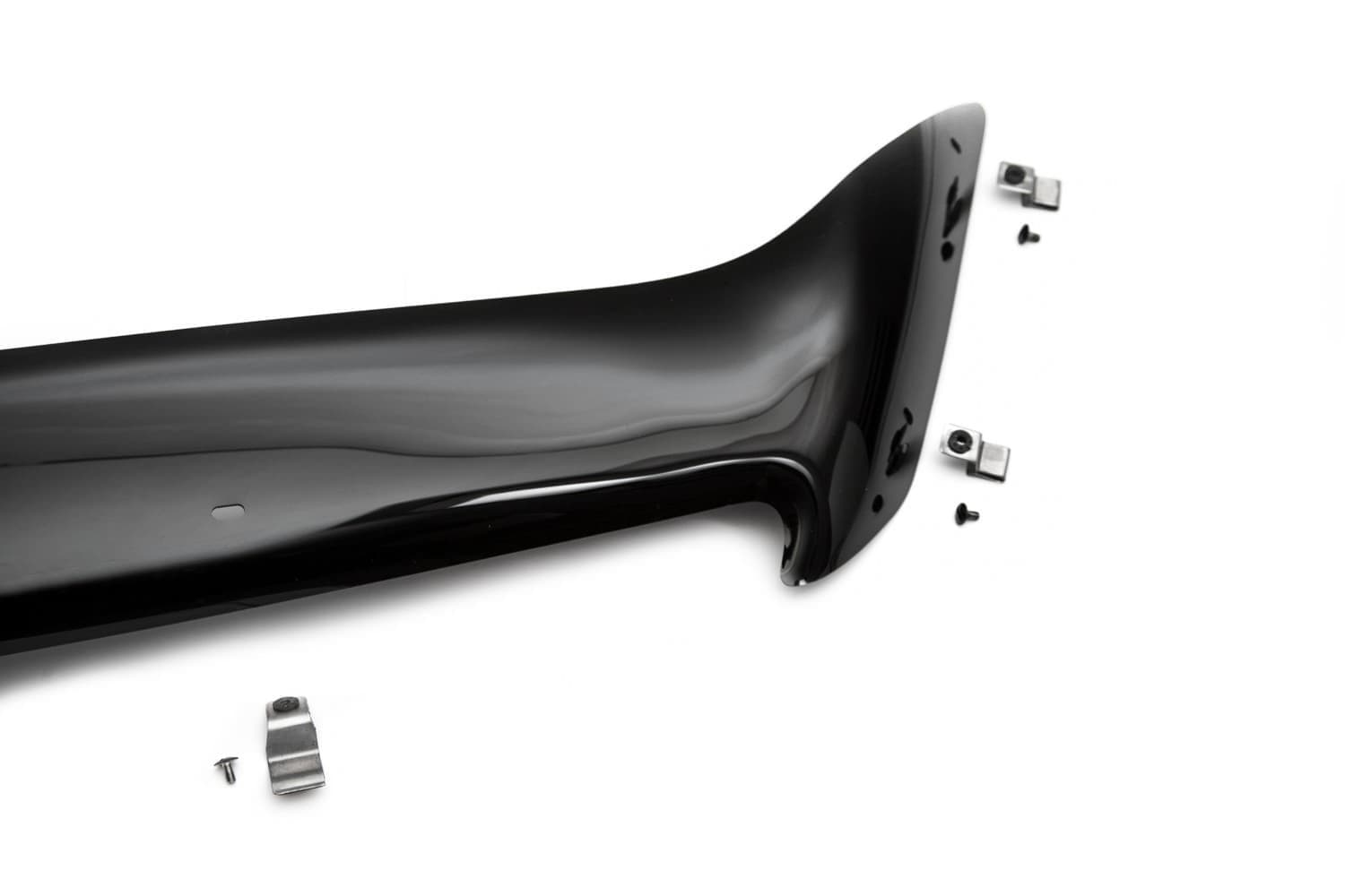 Широкие и узкие изделия, нескольких расцветок, аэродинамичного дизайна - крепятся на клипсы в штатные места. Установка дефлектора не требует сверления кузова и может производиться самостоятельно без обращения в автосервис. Имеют темный оттенок, с тонировкой до 21%. При установке визуально кажутся черными.