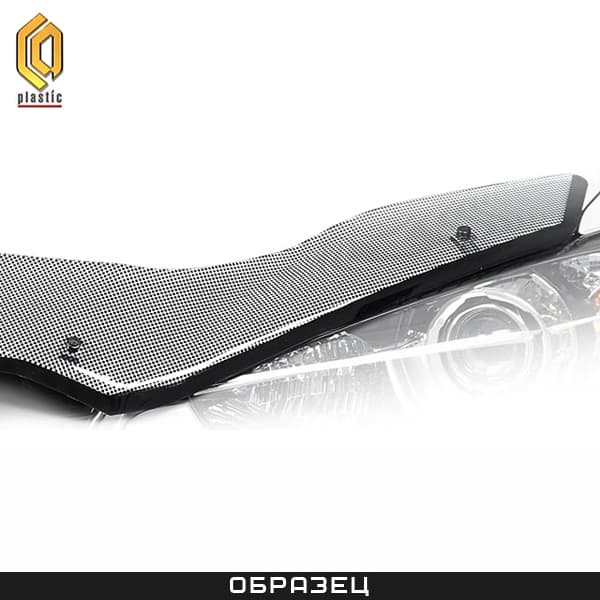 Легко крепится с помощью кронштейнов без его сверления. После установки кронштейны образуют зазор между ним и капотом, это позволяет удобно мыть и проветривать его переднюю кромку. Упорные силиконовые демпферы между дефлектором и капотом высотой 13 мм.