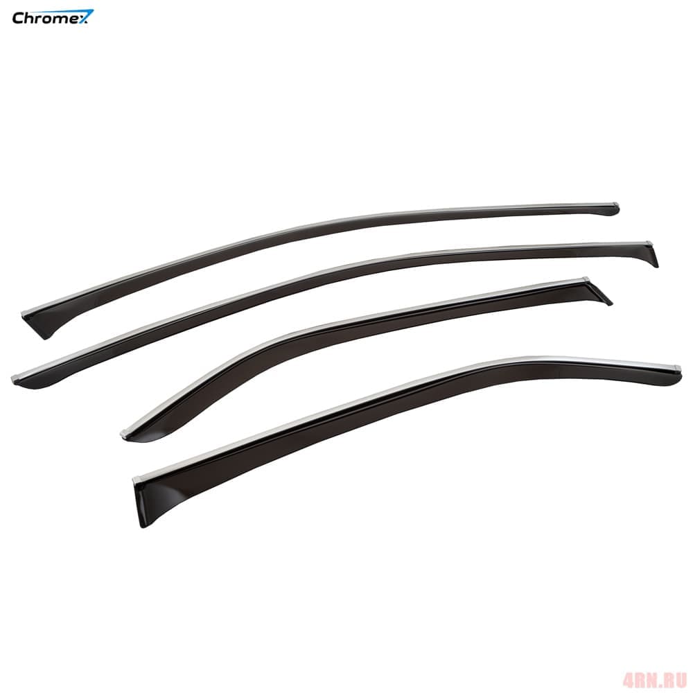 Дефлекторы окон с хромированным молдингом Chromex идеально сочетаются со штатным молдингом на кузове автомобиля, а также защищают салон от грязи, пыли, дождя, снега и обеспечивают комфортные условия при проветривании салона.