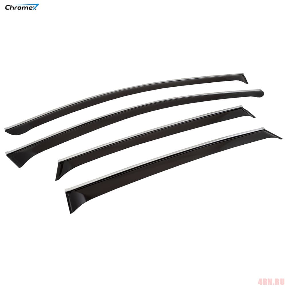 Дефлекторы окон с хромированным молдингом Chromex идеально сочетаются со штатным молдингом на кузове автомобиля, а также защищают салон от грязи, пыли, дождя, снега и обеспечивают комфортные условия при проветривании салона.