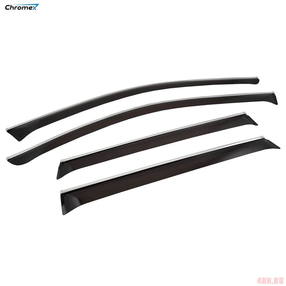 Дефлекторы окон с хромированным молдингом Chromex идеально сочетаются со штатным молдингом на кузове автомобиля, а также защищают салон от грязи, пыли, дождя, снега и обеспечивают комфортные условия при проветривании салона.