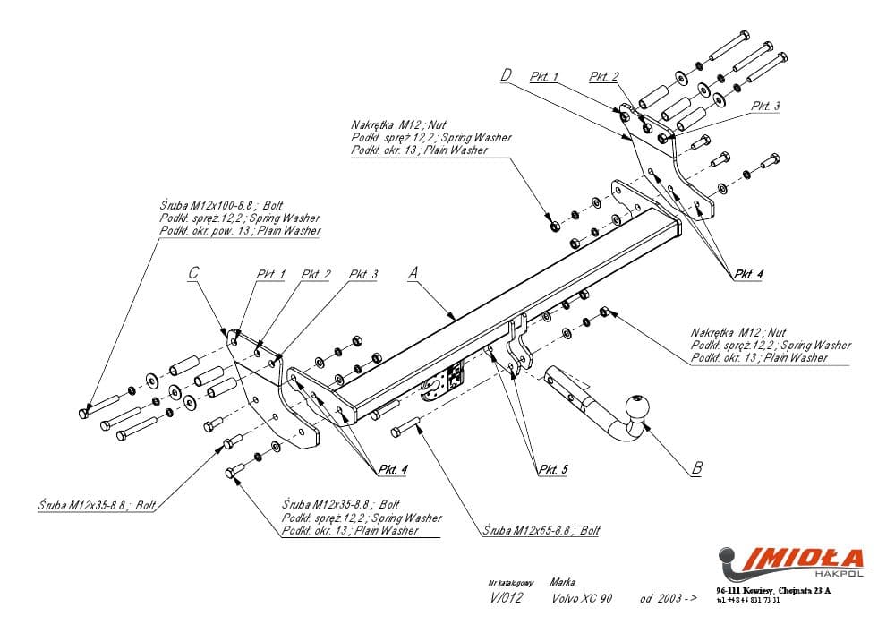 Польский фаркоп Imiola с условно съемным крюком на 2-х болтах (тип шара A), вырез в бампере при установке нужен, электрика приобретается отдельно, максимально разрешенная масса прицепа 2250 кг.