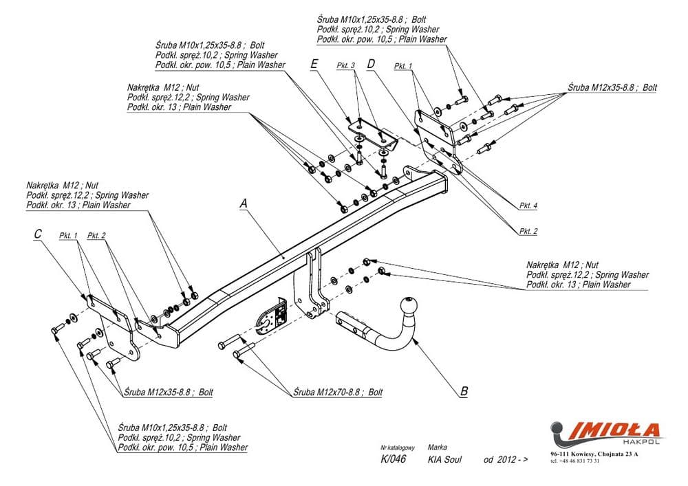 Польский фаркоп Imiola с условно съемным крюком на 2-х болтах (тип шара A), вырез в бампере при установке не нужен, электрика в комплекте, максимально разрешенная масса прицепа 1400 кг.