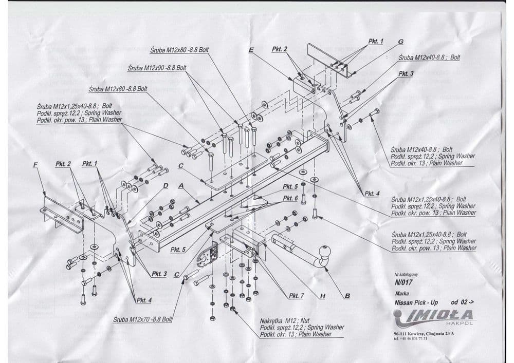 Польский фаркоп Imiola с условно съемным крюком на 2-х болтах (тип шара A), вырез в бампере при установке не нужен, электрика в комплекте, максимально разрешенная масса прицепа 3000 кг.