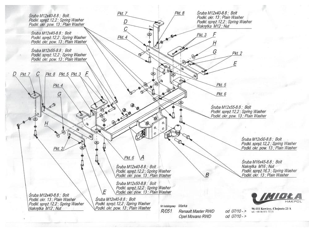 Польский фаркоп Imiola с фланцевым креплением на 2-х болтах (тип шара F), вырез в бампере при установке не нужен, электрика приобретается отдельно, максимально разрешенная масса прицепа 2500 кг.