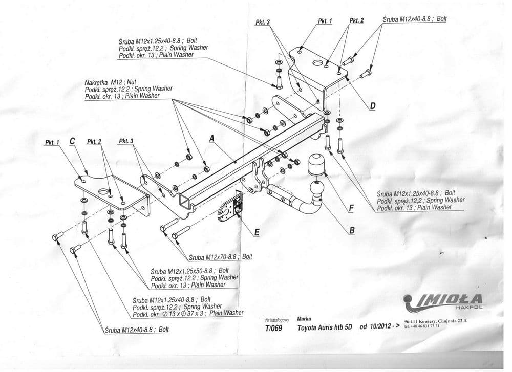 Польский фаркоп Imiola с условно съемным крюком на 2-х болтах (тип шара A), вырез в бампере при установке не нужен, электрика приобретается отдельно, максимально разрешенная масса прицепа 1600 кг.