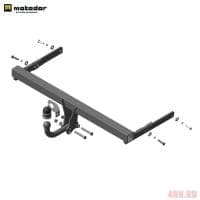 Российский фаркоп Мотодор с с условно съемным крюком на 2-х болтах (тип шара A), вырез в бампере при установке не нужен, электрика приобретается отдельно, максимально разрешенная масса прицепа 1500 кг.