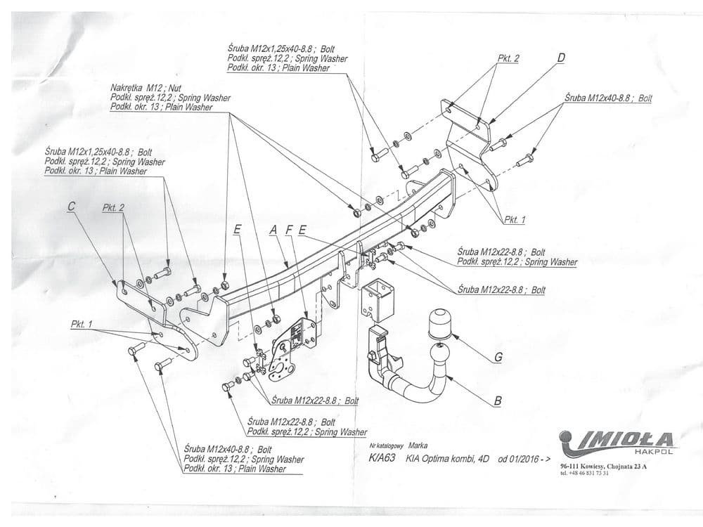 Польский фаркоп Imiola со съемным крюком вертикального крепления (тип шара V), вырез в бампере при установке нужен, электрика приобретается отдельно, максимально разрешенная масса прицепа 1800 кг.