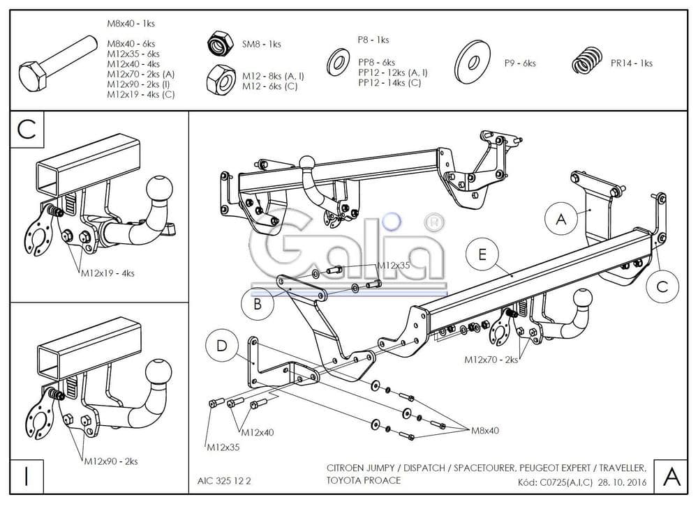 Оцинкованный фаркоп Galia (Словения) со съемным крюком горизонтального крепления (тип шара C), вырез в бампере при установке нужен, электрика приобретается отдельно, максимально разрешенная масса прицепа 2600 кг.