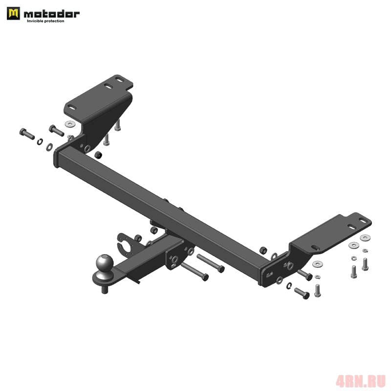 Российский фаркоп Мотодор с с усиленным крюком на 2-х болтах (тип шара E), вырез в бампере при установке не нужен, электрика приобретается отдельно, максимально разрешенная масса прицепа 1500 кг.