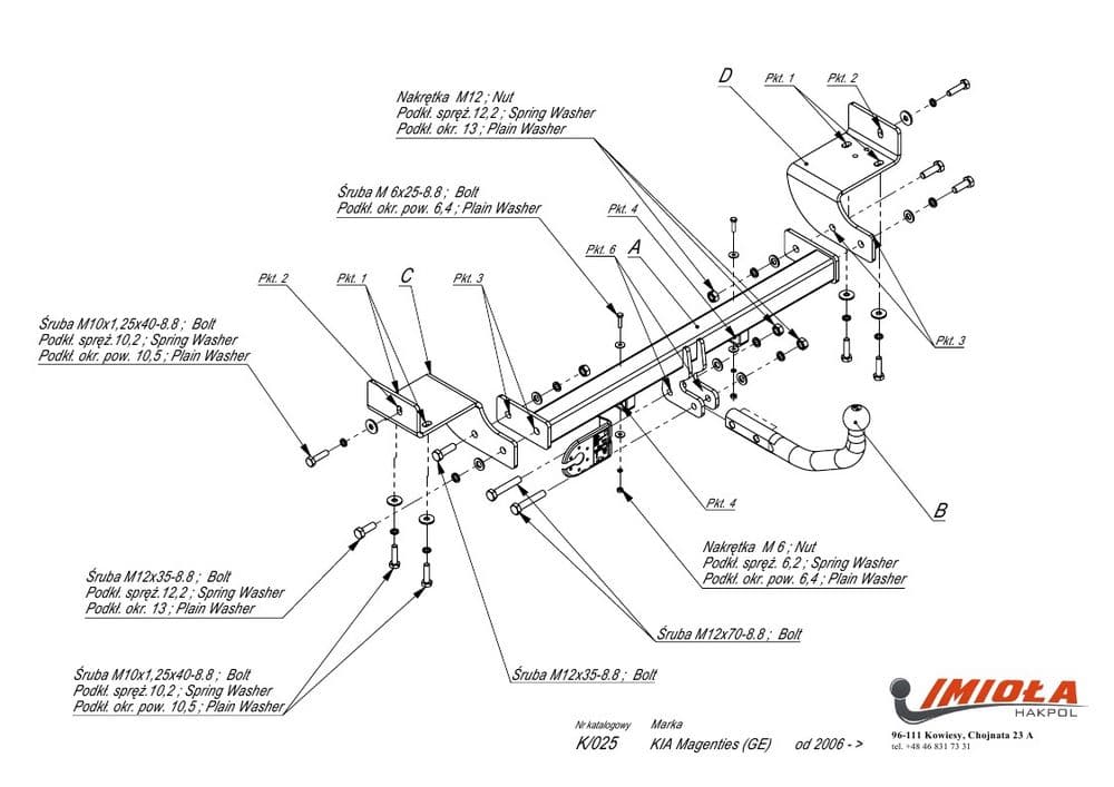 Польский фаркоп Imiola с условно съемным крюком на 2-х болтах (тип шара A), вырез в бампере при установке нужен, электрика приобретается отдельно, максимально разрешенная масса прицепа 1700 кг.