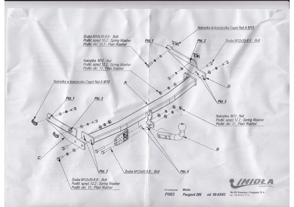 Польский фаркоп Imiola с условно съемным крюком на 2-х болтах (тип шара A), вырез в бампере при установке не нужен, электрика приобретается отдельно, максимально разрешенная масса прицепа 1100 кг.