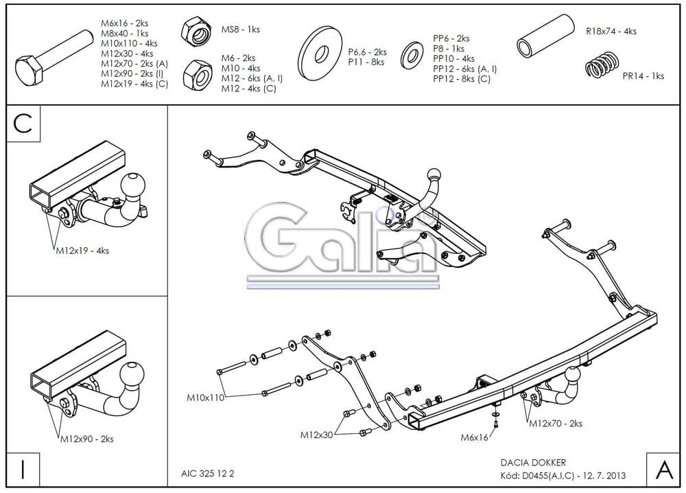 Оцинкованный фаркоп Galia (Словения) с условно съемным крюком на 2-х болтах (тип шара A), вырез в бампере при установке нужен, электрика приобретается отдельно.