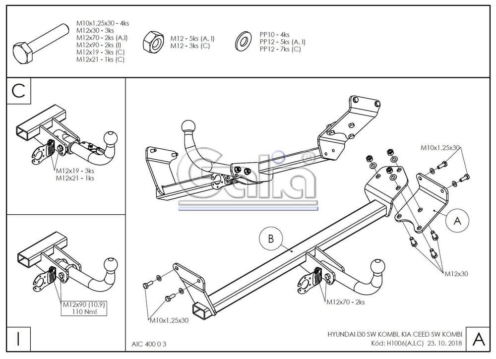 Фаркоп Galia быстросъемный для Hyundai i30 универсал (2017-2024) № H100C