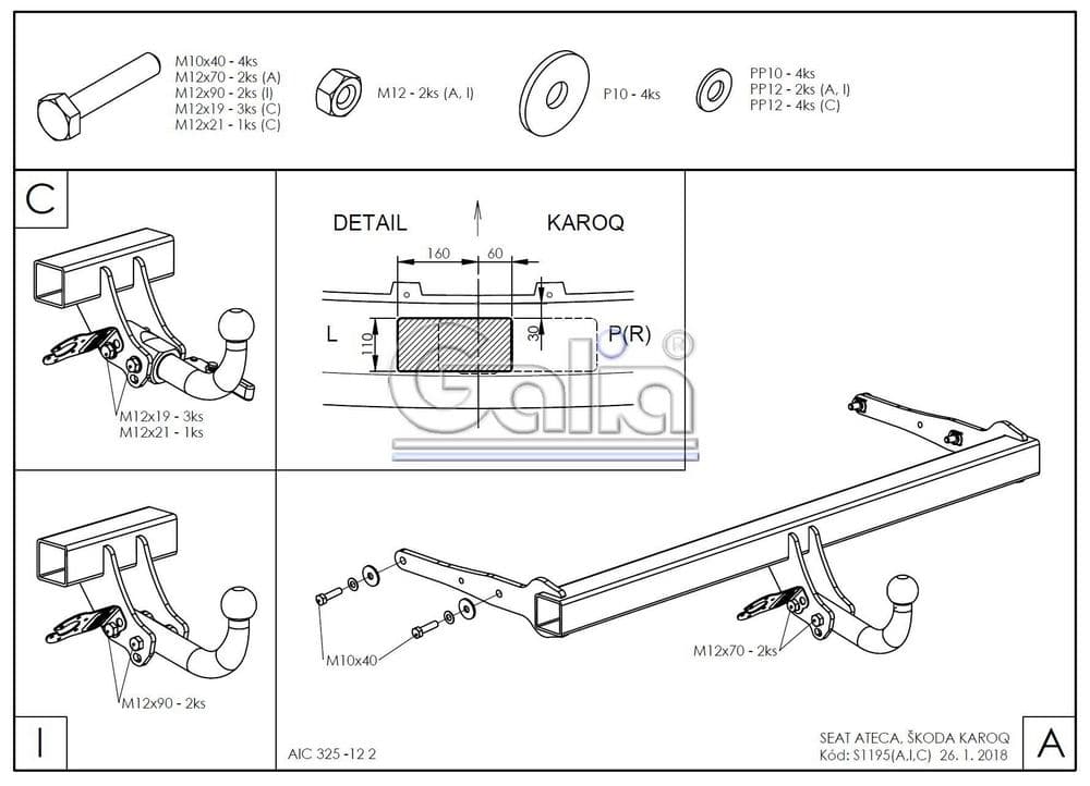 Оцинкованный фаркоп Galia (Словения) с условно съемным крюком на 2-х болтах (тип шара A), вырез в бампере при установке не нужен, электрика приобретается отдельно, максимально разрешенная масса прицепа 2500 кг.