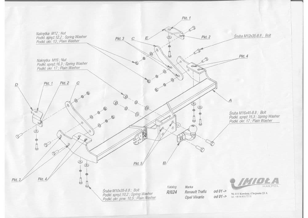 Польский фаркоп Imiola с фланцевым креплением на 2-х болтах (тип шара F), вырез в бампере при установке не нужен, электрика приобретается отдельно, максимально разрешенная масса прицепа 2000 кг.