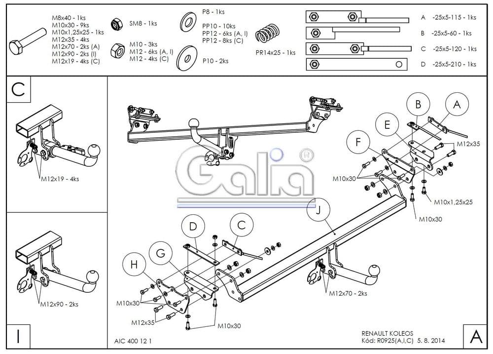 Оцинкованный фаркоп Galia (Словения) с условно съемным крюком на 2-х болтах (тип шара A), вырез в бампере при установке не нужен, электрика приобретается отдельно, максимально разрешенная масса прицепа 2000 кг.