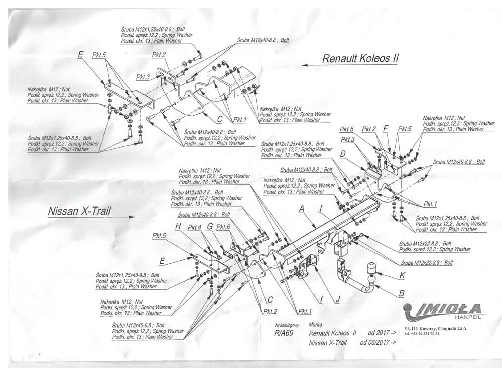 Польский фаркоп Imiola со съемным крюком вертикального крепления (тип шара V), вырез в бампере при установке не нужен, электрика приобретается отдельно, максимально разрешенная масса прицепа 2000 кг.