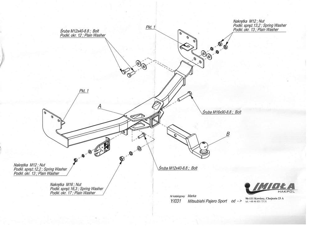 Польский фаркоп Imiola со съемным крюком под квадрат 50х50 (тип шара E), вырез в бампере при установке не нужен, электрика в комплекте, максимально разрешенная масса прицепа 1500 кг.