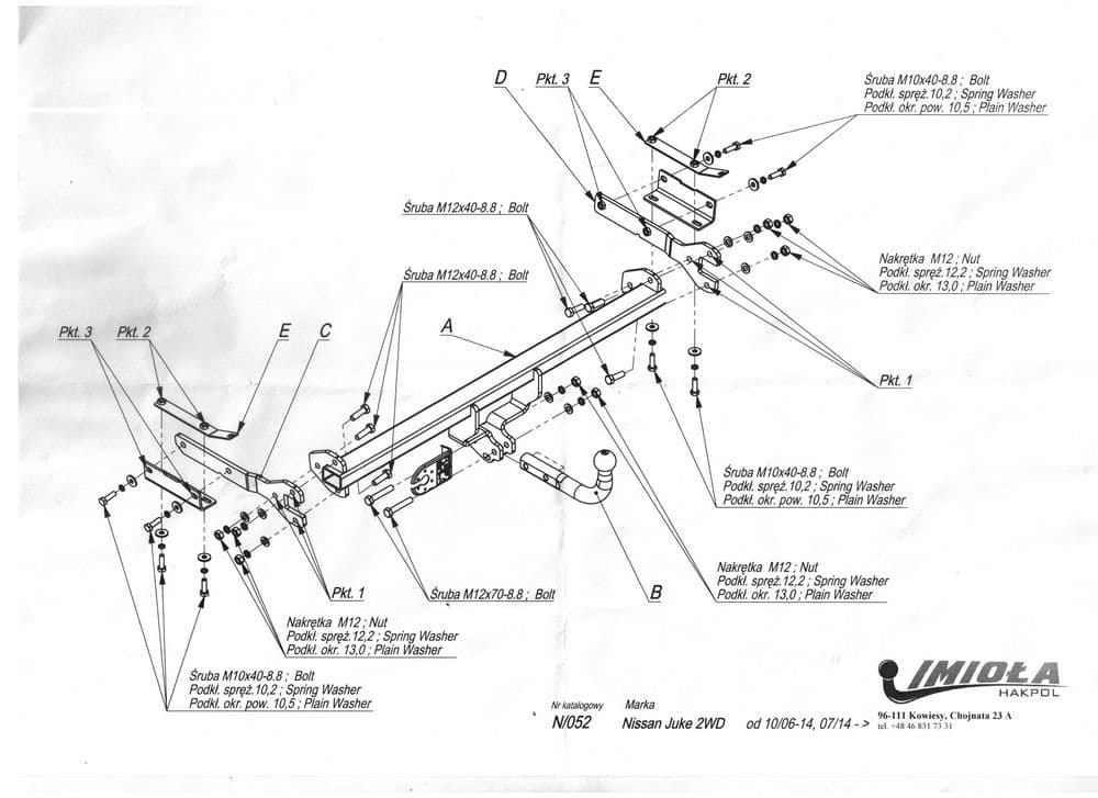 Польский фаркоп Imiola со съемным крюком под квадрат 50х50 (тип шара E), вырез в бампере при установке не нужен, электрика приобретается отдельно, максимально разрешенная масса прицепа 1500 кг.