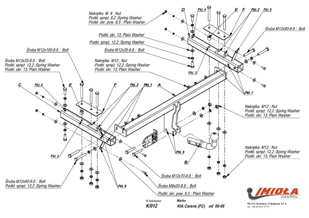 Польский фаркоп Imiola с условно съемным крюком на 2-х болтах (тип шара A), вырез в бампере при установке не нужен, электрика в комплекте, максимально разрешенная масса прицепа 1250 кг.