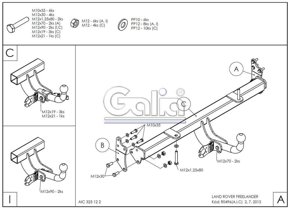 Оцинкованный фаркоп Galia (Словения) с условно съемным крюком на 2-х болтах (тип шара A), вырез в бампере при установке не нужен, электрика приобретается отдельно, максимально разрешенная масса прицепа 2000 кг.