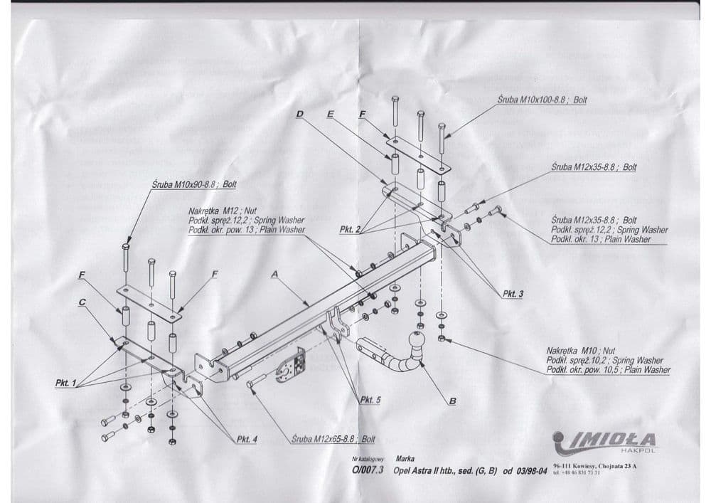 Польский фаркоп Imiola с условно съемным крюком на 2-х болтах (тип шара A), вырез в бампере при установке не нужен, электрика в комплекте, максимально разрешенная масса прицепа 1500 кг.