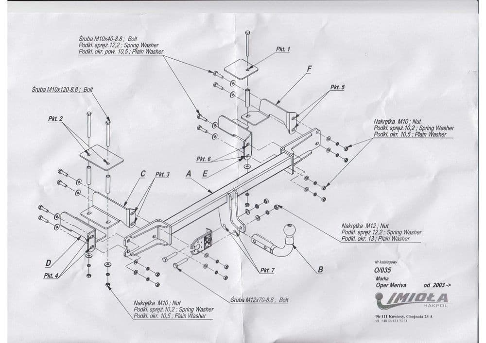 Польский фаркоп Imiola с условно съемным крюком на 2-х болтах (тип шара A), вырез в бампере при установке нужен, электрика в комплекте, максимально разрешенная масса прицепа 1360 кг.