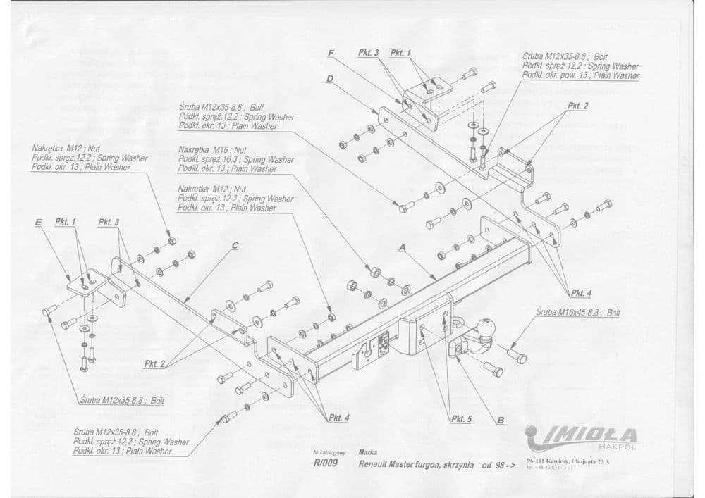 Польский фаркоп Imiola с фланцевым креплением на 2-х болтах (тип шара F), вырез в бампере при установке не нужен, электрика в комплекте, максимально разрешенная масса прицепа 2300 кг.