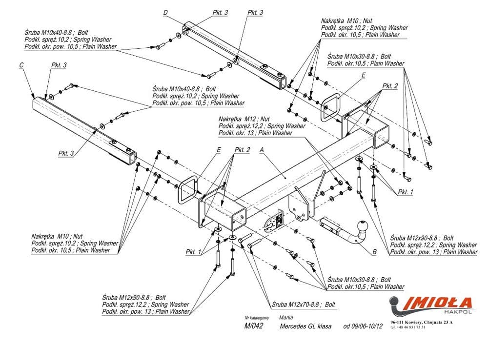 Польский фаркоп Imiola с условно съемным крюком на 2-х болтах (тип шара A), вырез в бампере при установке не нужен, электрика приобретается отдельно, максимально разрешенная масса прицепа 3500 кг.