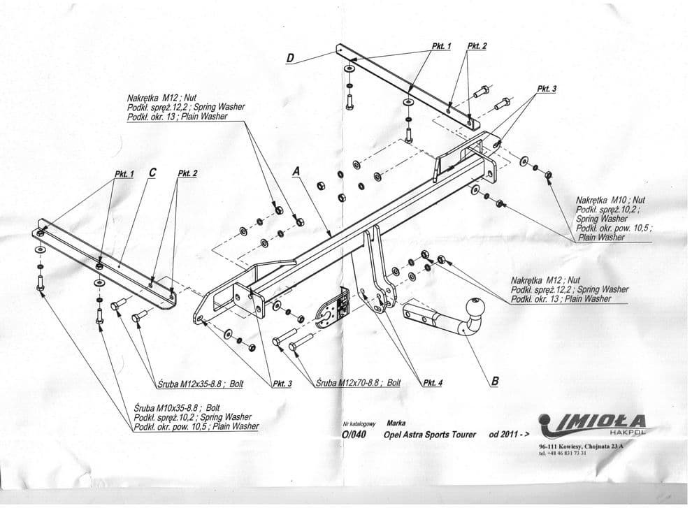 Польский фаркоп Imiola со съемным крюком вертикального крепления (тип шара V), вырез в бампере при установке не нужен, электрика приобретается отдельно, максимально разрешенная масса прицепа 1800 кг.