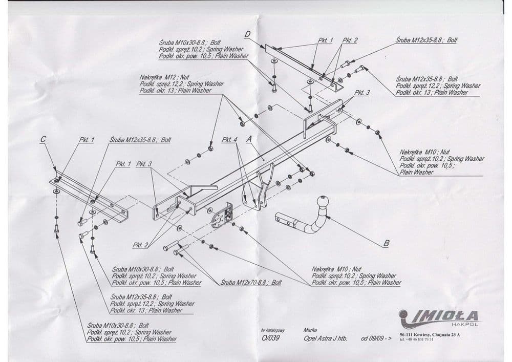 Польский фаркоп Imiola с условно съемным крюком на 2-х болтах (тип шара A), вырез в бампере при установке не нужен, электрика приобретается отдельно, максимально разрешенная масса прицепа 1500 кг.