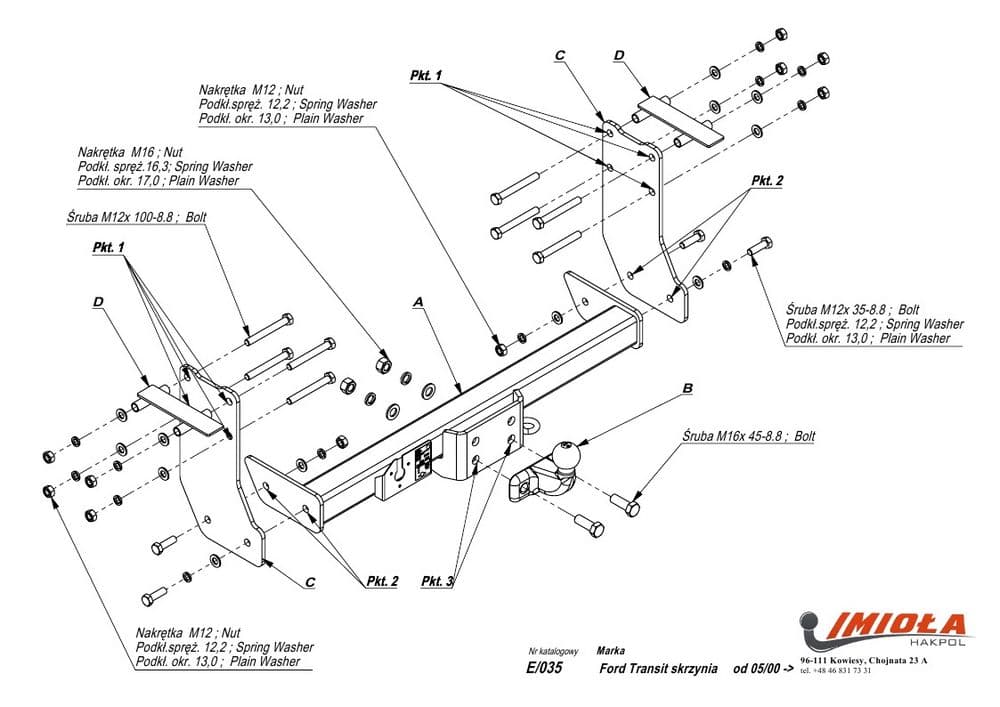 Польский фаркоп Imiola с фланцевым креплением на 2-х болтах (тип шара F), вырез в бампере при установке не нужен, электрика в комплекте, максимально разрешенная масса прицепа 3000 кг.