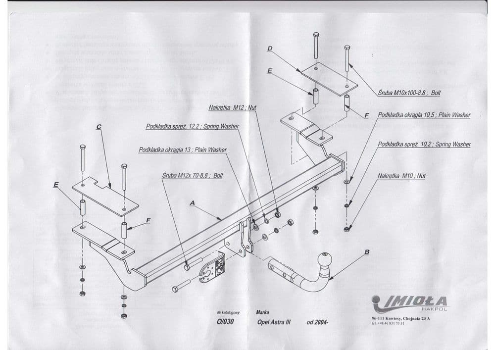 Польский фаркоп Imiola с условно съемным крюком на 2-х болтах (тип шара A), вырез в бампере при установке не нужен, электрика в комплекте, максимально разрешенная масса прицепа 1650 кг.