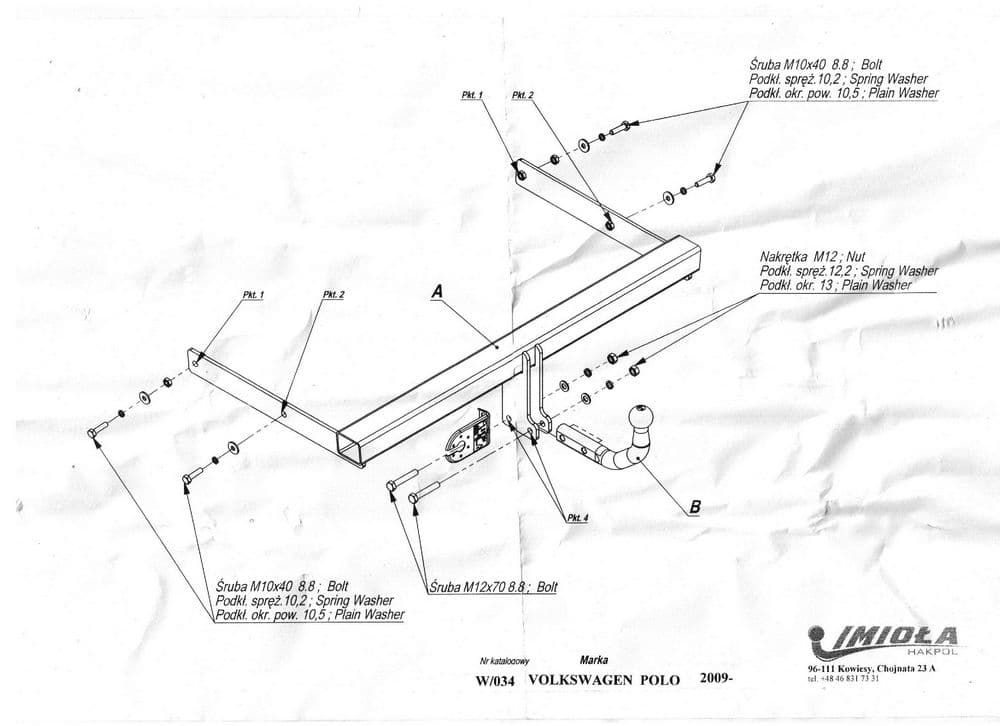 Польский фаркоп Imiola с условно съемным крюком на 2-х болтах (тип шара A), вырез в бампере при установке нужен, электрика приобретается отдельно, максимально разрешенная масса прицепа 1390 кг.