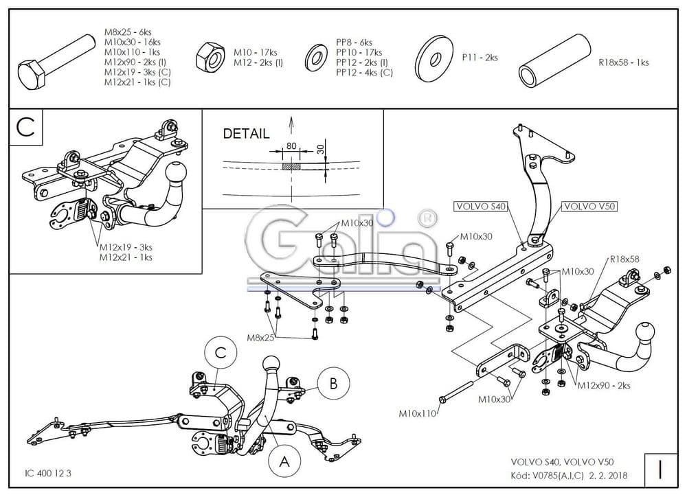 Оцинкованный фаркоп Galia (Словения) с условно съемным крюком на 2-х болтах (тип шара A), вырез в бампере при установке нужен, электрика приобретается отдельно, максимально разрешенная масса прицепа 1600 кг.