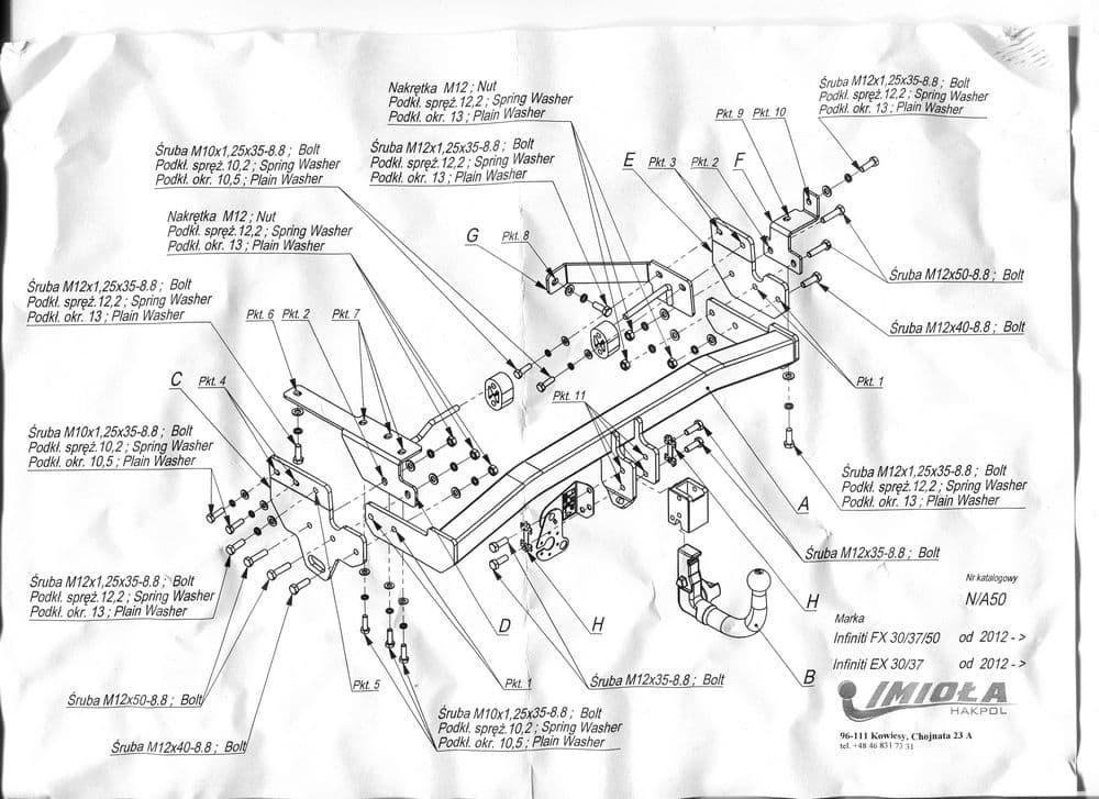 Польский фаркоп Imiola со съемным крюком вертикального крепления (тип шара V), вырез в бампере при установке нужен, электрика приобретается отдельно, максимально разрешенная масса прицепа 2200 кг.
