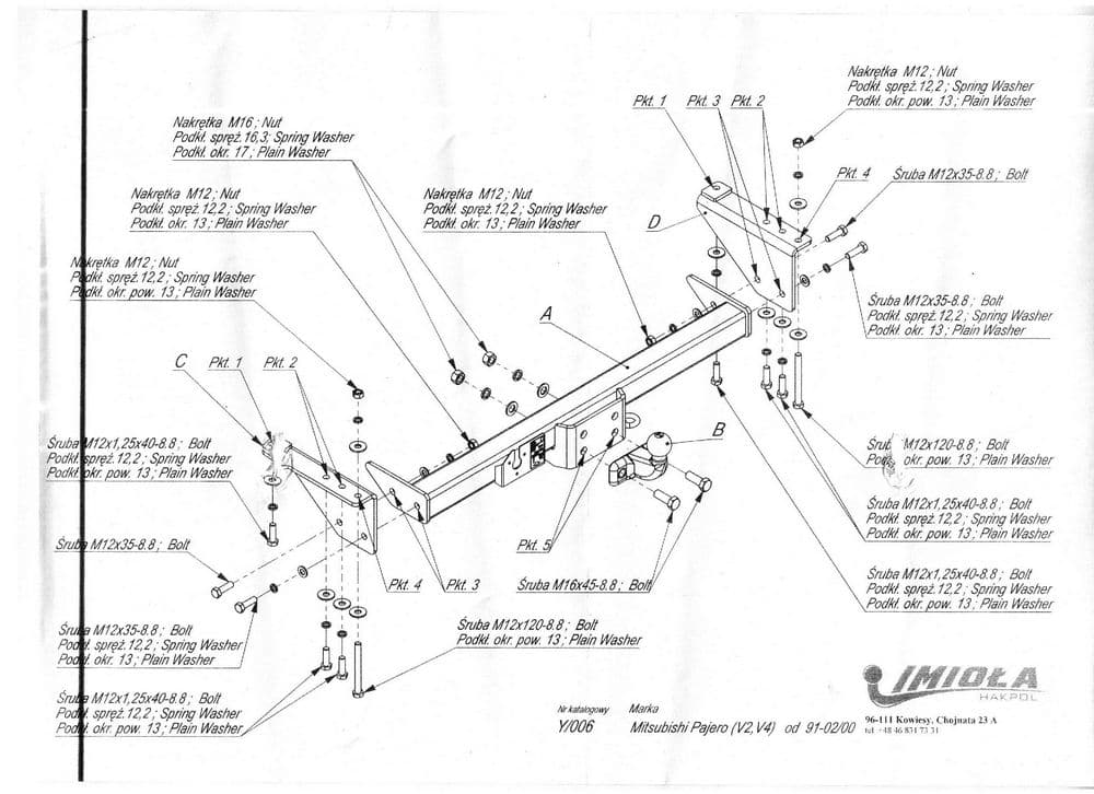 Польский фаркоп Imiola с фланцевым креплением на 2-х болтах (тип шара F), вырез в бампере при установке не нужен, электрика в комплекте, максимально разрешенная масса прицепа 3300 кг.