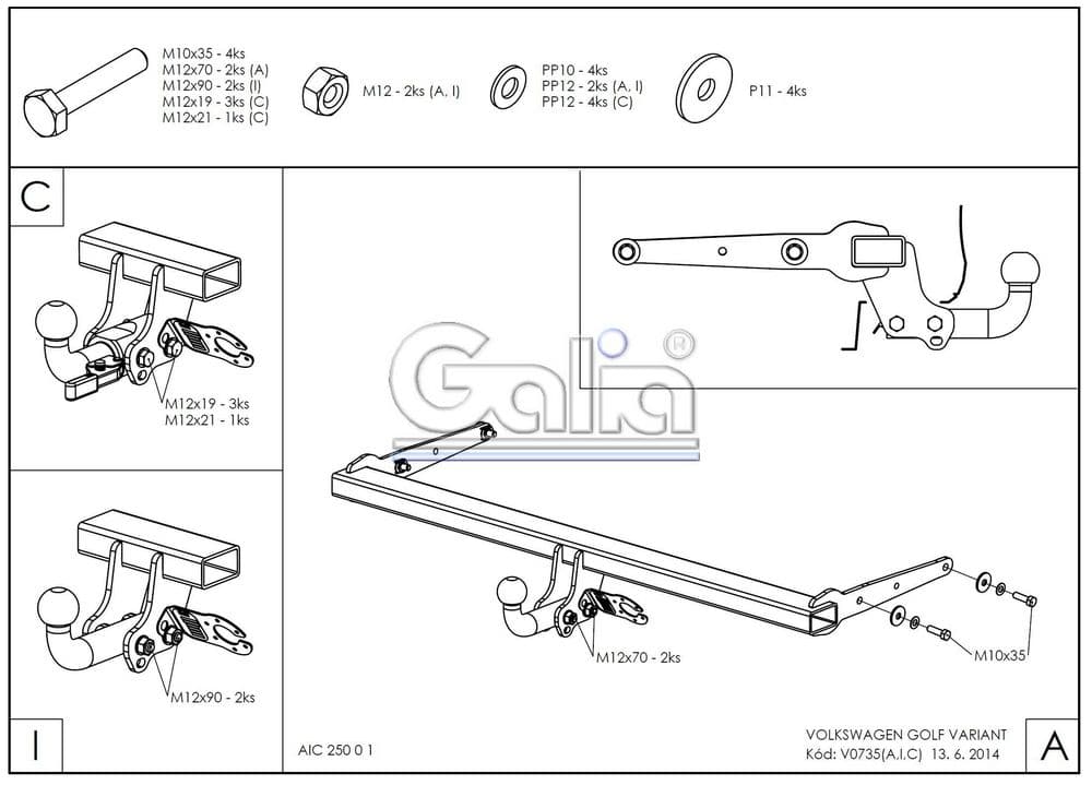 Оцинкованный фаркоп Galia (Словения) с условно съемным крюком на 2-х болтах (тип шара A), вырез в бампере при установке нужен, электрика приобретается отдельно, максимально разрешенная масса прицепа 2000 кг.
