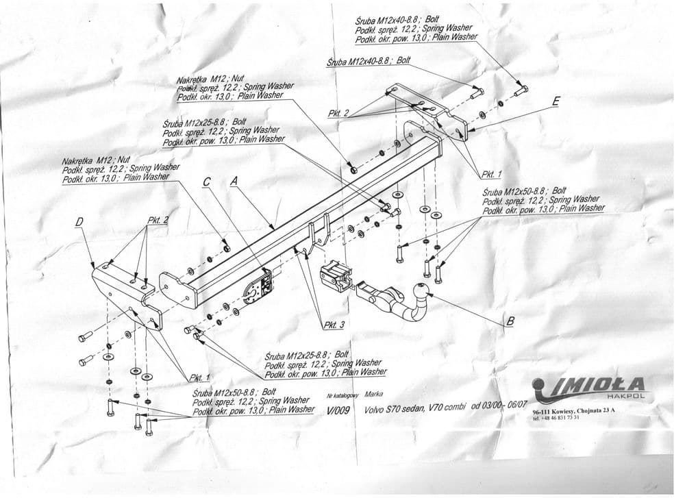 Польский фаркоп Imiola со състросъемным крюком горизонтального крепления (тип шара H), вырез в бампере при установке не нужен, электрика в комплекте, максимально разрешенная масса прицепа 2000 кг.