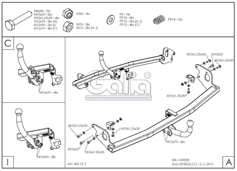 Оцинкованный фаркоп Galia (Словения) с условно съемным крюком на 2-х болтах (тип шара A), вырез в бампере при установке не нужен, электрика приобретается отдельно, максимально разрешенная масса прицепа 1600 кг.