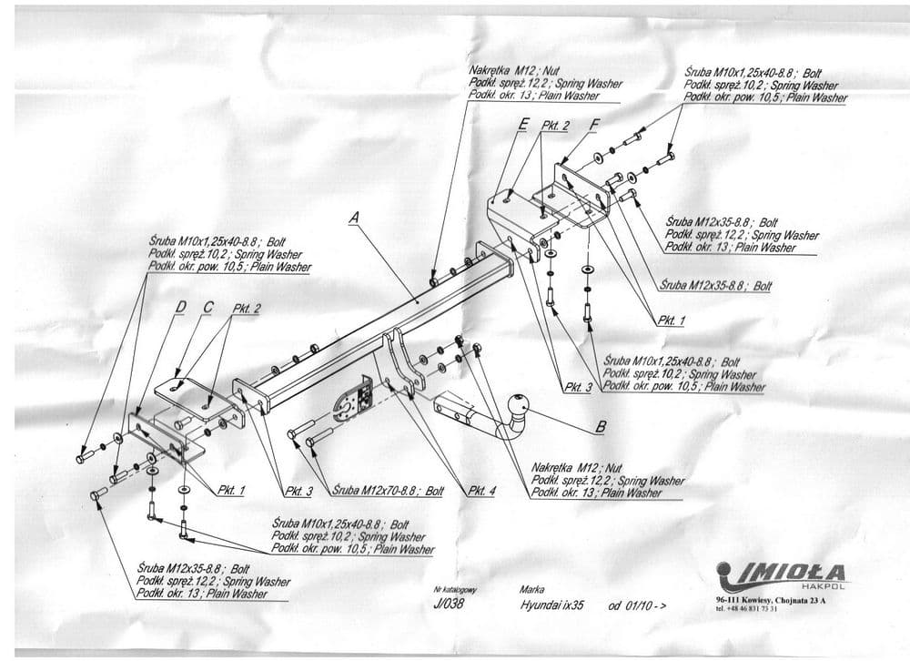 Польский фаркоп Imiola с условно съемным крюком на 2-х болтах (тип шара A), вырез в бампере при установке нужен, электрика в комплекте, максимально разрешенная масса прицепа 2200 кг.