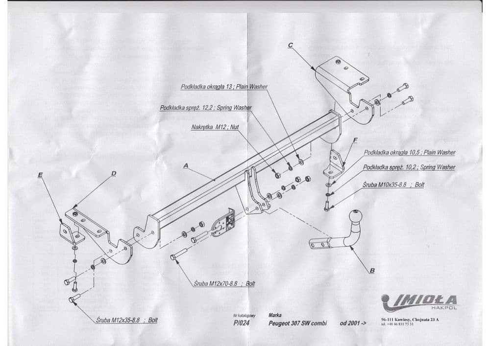 Польский фаркоп Imiola с условно съемным крюком на 2-х болтах (тип шара A), вырез в бампере при установке не нужен, электрика в комплекте, максимально разрешенная масса прицепа 1700 кг.
