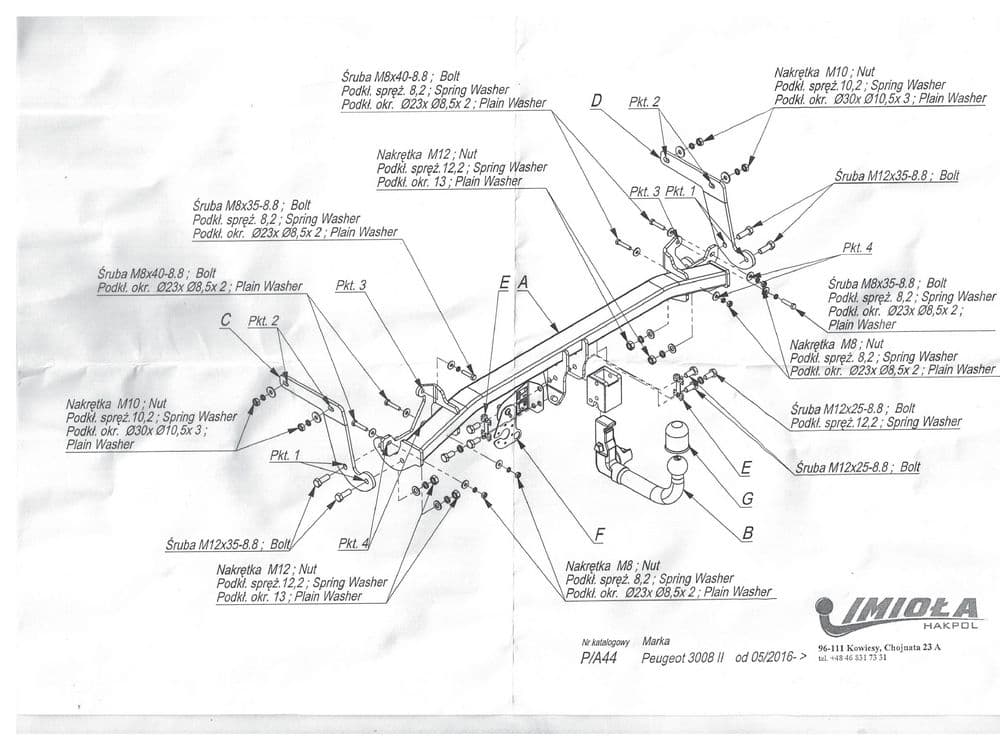 Польский фаркоп Imiola со съемным крюком вертикального крепления (тип шара V), вырез в бампере при установке нужен, электрика приобретается отдельно, максимально разрешенная масса прицепа 2000 кг.