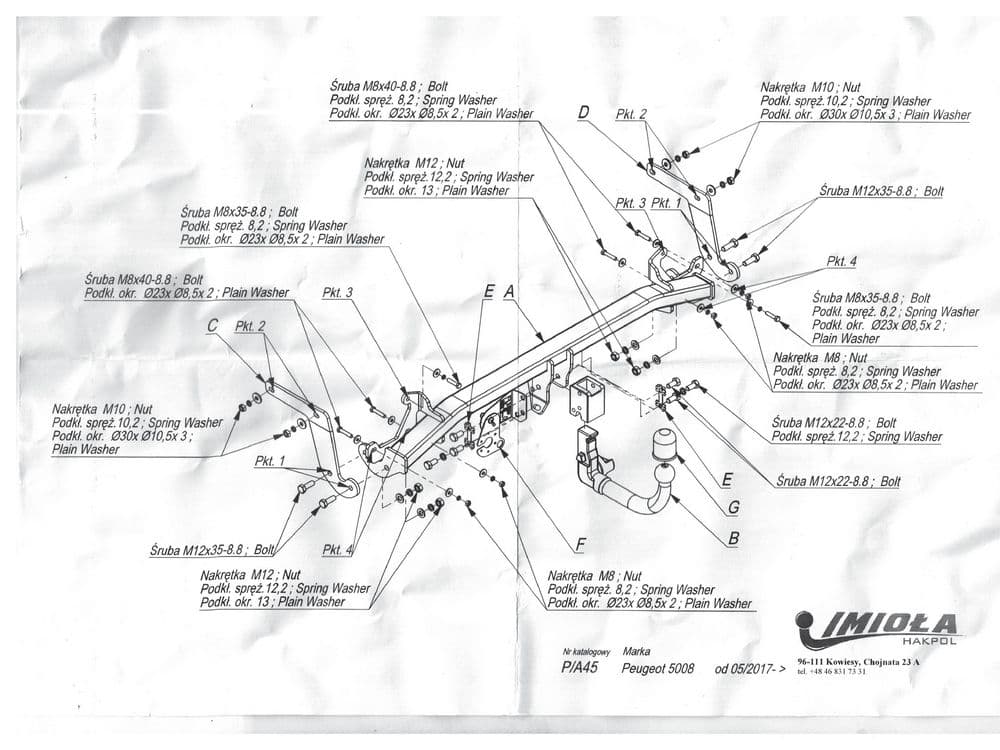 Польский фаркоп Imiola со съемным крюком вертикального крепления (тип шара V), вырез в бампере при установке нужен, электрика приобретается отдельно, максимально разрешенная масса прицепа 2000 кг.