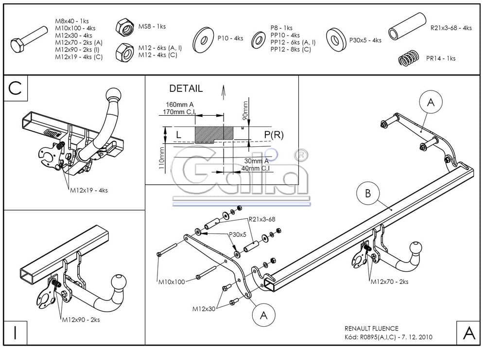 Оцинкованный фаркоп Galia (Словения) с условно съемным крюком на 2-х болтах (тип шара A), вырез в бампере при установке нужен, электрика приобретается отдельно, максимально разрешенная масса прицепа 1400 кг.