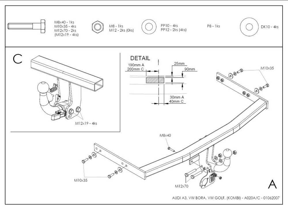 Фаркоп Galia для Volkswagen Bora седан, универсал 2WD (1998-2005) № A020A