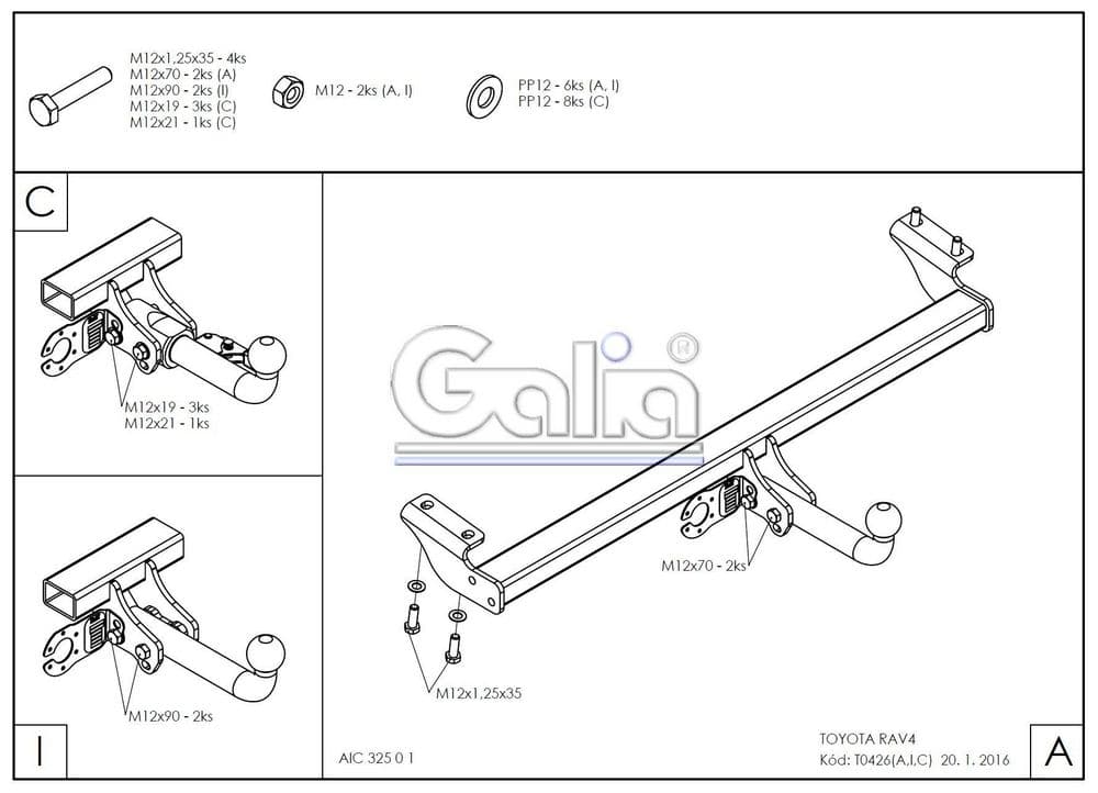 Оцинкованный фаркоп Galia (Словения) с условно съемным крюком на 2-х болтах (тип шара A), вырез в бампере при установке не нужен, электрика приобретается отдельно, максимально разрешенная масса прицепа 1750 кг.
