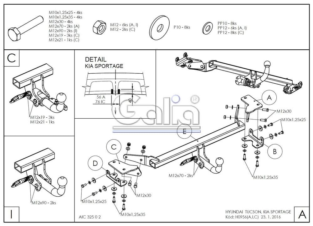 Оцинкованный фаркоп Galia (Словения) со съемным крюком горизонтального крепления (тип шара C), вырез в бампере при установке нужен, электрика приобретается отдельно, максимально разрешенная масса прицепа 1700 кг.