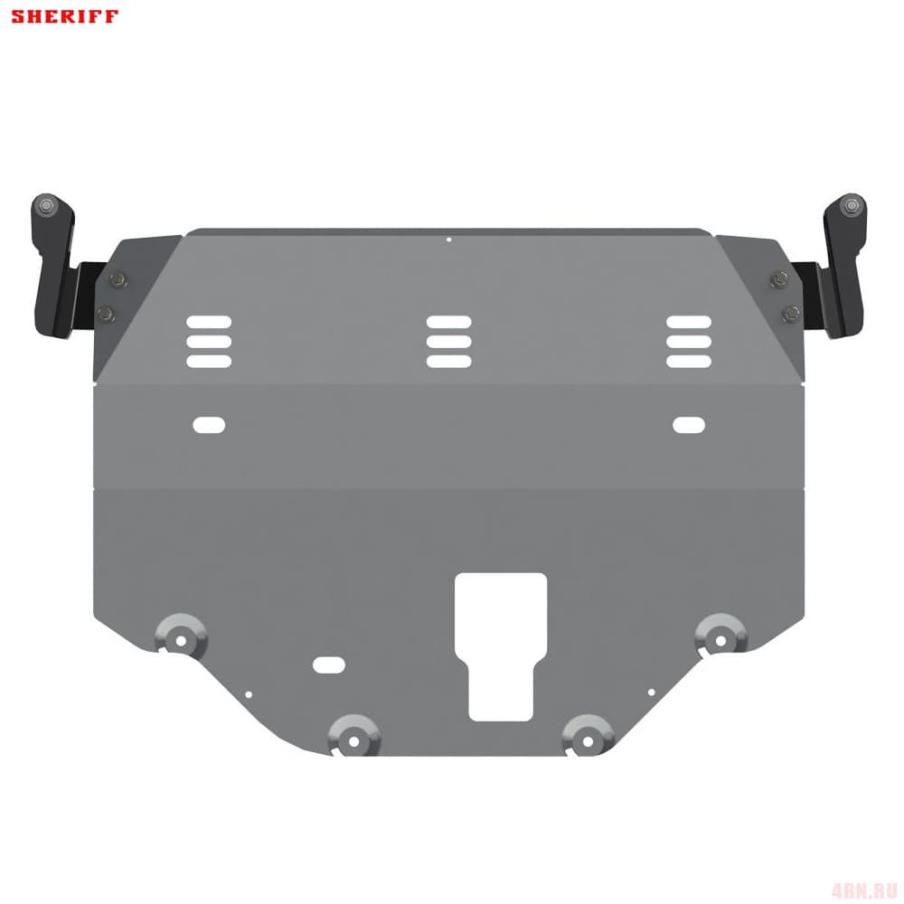 Защита картера Sheriff нужна для сохранности узлов и агрегатов, находящихся на днище авто. Она надежно защитит двигательный отсек вашего автомобиля от повреждений. Также она защищает моторный отсек от влаги и грязи, и предусматривает наличие металлических крыльев, которые выполняют функцию пыльника.